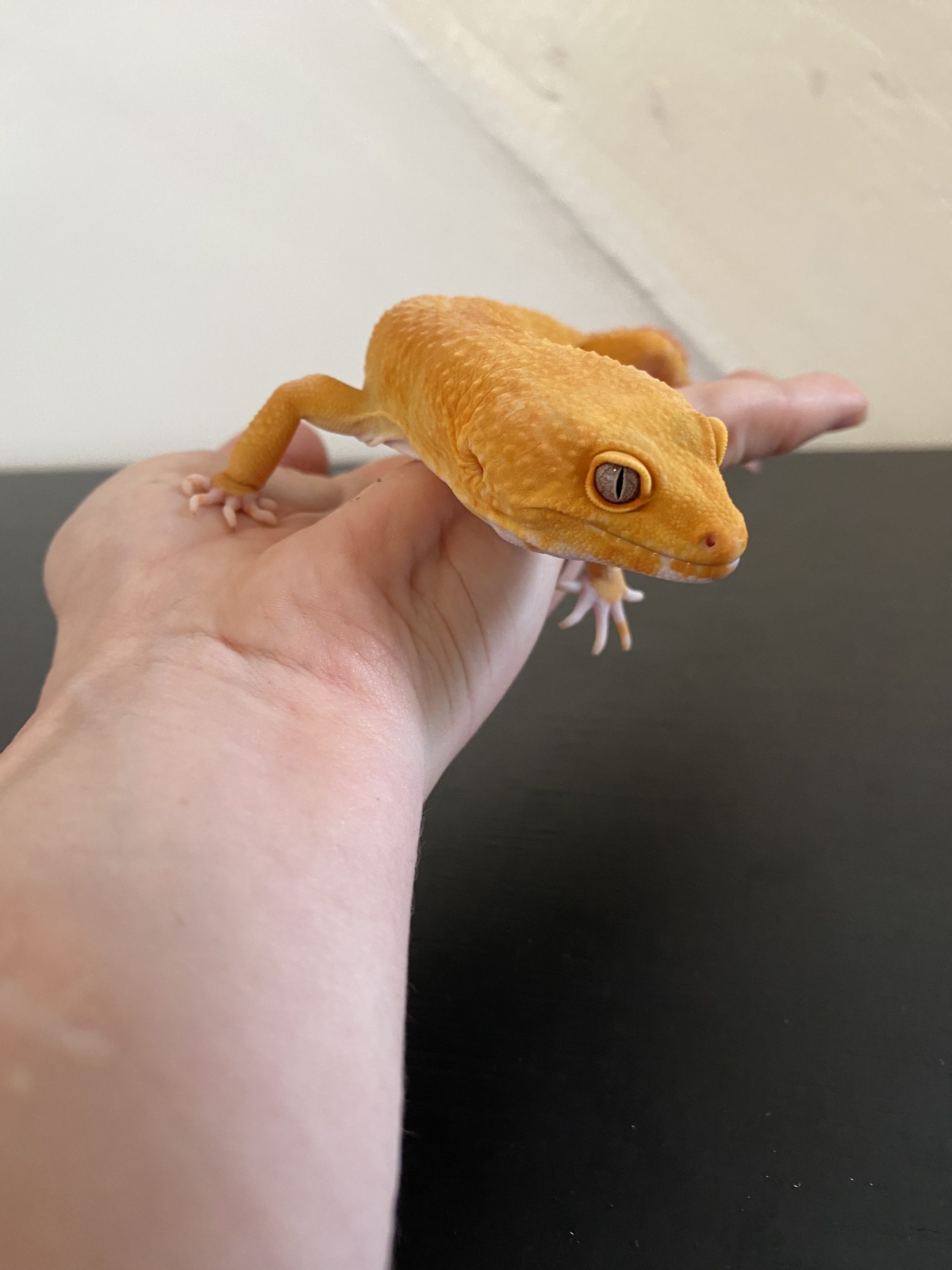 Fantastic male leopard gecko to add to a breeding programme or just as a stunning pet. Very happy chappy. Super friendly and happy to be handled. Very good at eating. Currently on locusts but will eat crickets too.